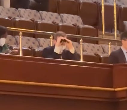 TO DO LIST. Thinking back to two years ago - and the extended fight to elect a House Speaker - I need to find my binoculars. They came in very handy from the House galleries to check on what lawmakers were doing on the House floor during that 15-ballot GOP nightmare. (This photo was taken by Rep. Alexandria Ocasio-Cortez of New York.)