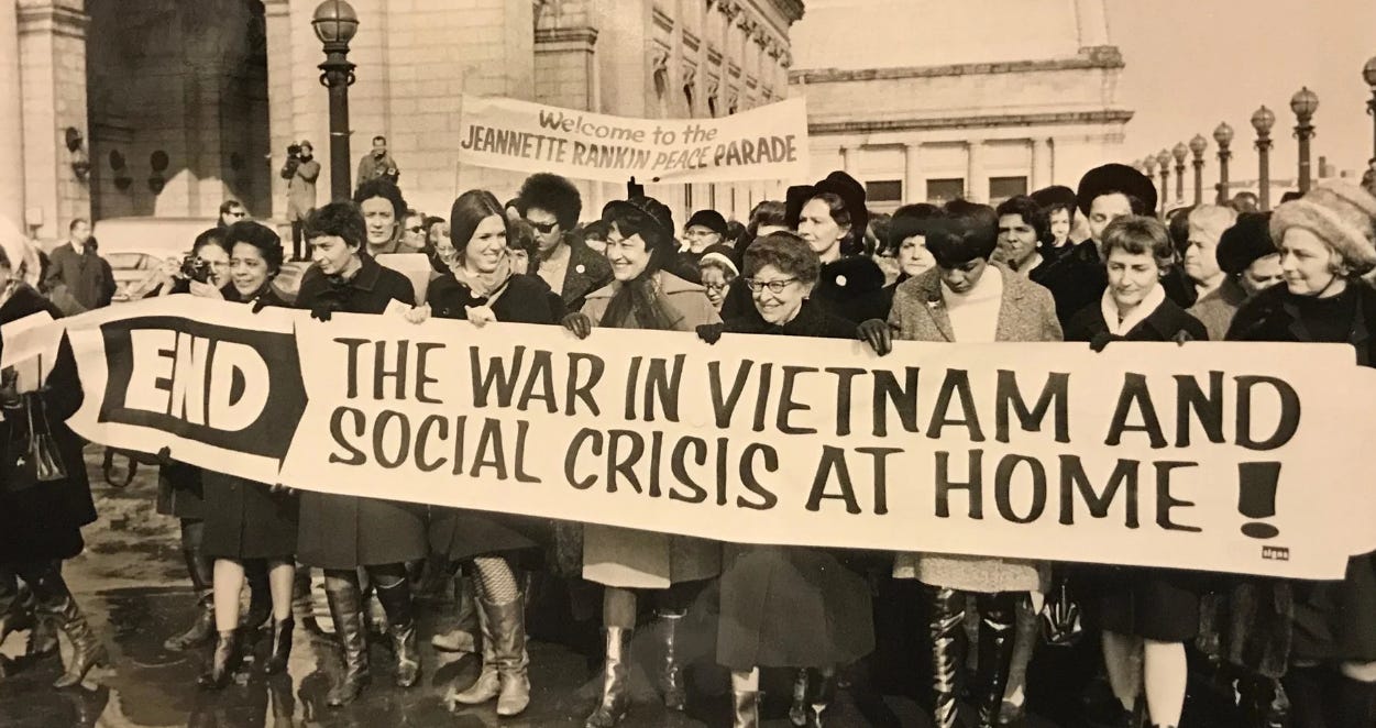 MUSE OF HISTORY. January 15, 1968. On this date, ex-Rep. Jeannette Rankin of Montana - the only lawmaker who voted against the U.S. entering both World War I and World War II - returned to Capitol Hill to lead a protest against the Vietnam War. Rankin (wearing glasses in the middle of the photo below) joined with 5,000 women, marching from Union Station to the Capitol.