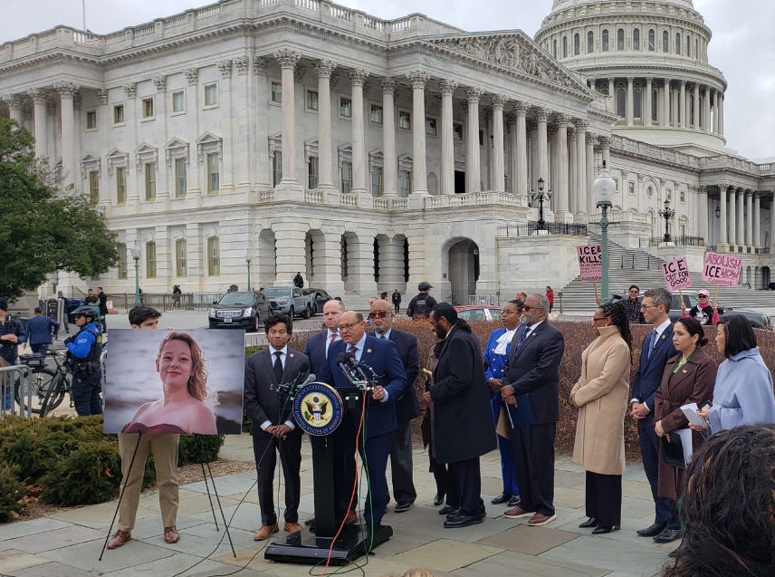 SHOOTING. Lawmakers had a picture of Renee Good at their rally, as they said her death should not be swept under the rug. “We will not stop fighting until we achieve real justice and accountability,” said Rep. Ilhan Omar (D-MN).