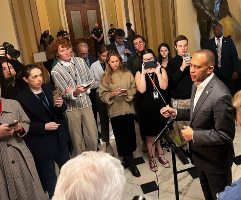 BACK AND FORTH. It’s part of what’s developed into a Bipartisan Battle of News Conferences during this shutdown. No one seems to be negotiating, but both sides are more than happy to talk smack about the other party to the cameras. This was House Democratic Leader Hakeem Jeffries speaking to reporters last Friday.